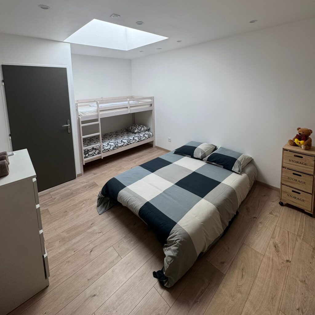 Le gîte comprend quatre chambres de deux personnes avec salle de bains privative dans chacune des chambres ainsi qu’une chambre spacieuse avec 3 lits superposés et une salle de bain attachée à celle-ci.